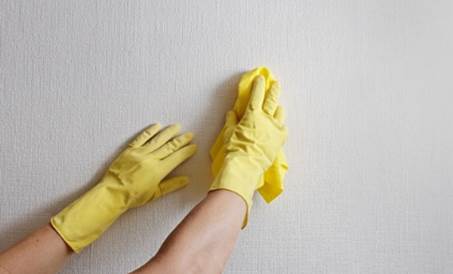 - Очистите поверхность обоев от пыли, паутины и других загрязнений. Для этого используйте пылесос, сухие щетки и губку.