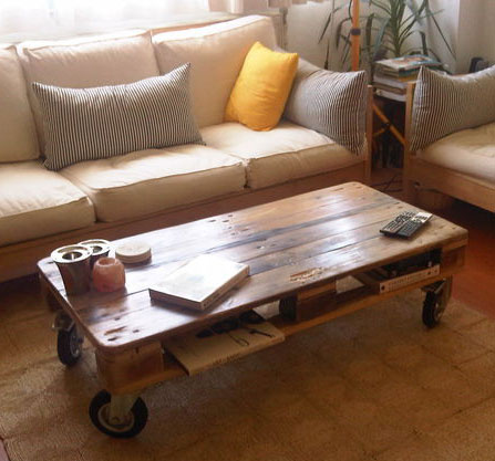 Небольшой журнальный столик из поддона освежит комнату и станет уникальным предметом в вашем интерьере, ведь такой не купишь в магазине.